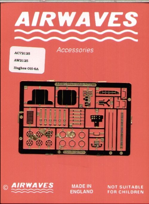 Re-released! Hughes OH-6A (designed to be used with Italeri kits) [3945-36] Manufacturer: Airwaves (etched) Code Number: AEC72125 Scale: 1:72 Item type: Aircraft detailing sets (etched) View PDF information document for this item.Download Adobe Reader to view PDF files... Price: