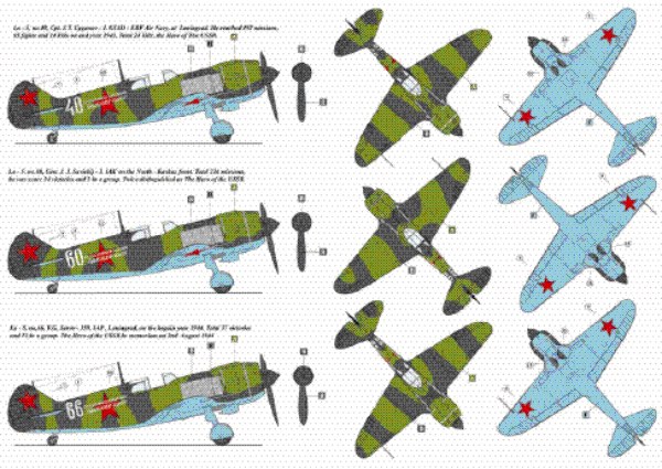 Lavochkin La-5 Soviet Aces (4) Silver 3 Capt K.A.Novikov; Silver 40 Capt J.Y.Cyganov; Silver 60 Gen J.J.Savickij; Silver 66 K.G.Serov