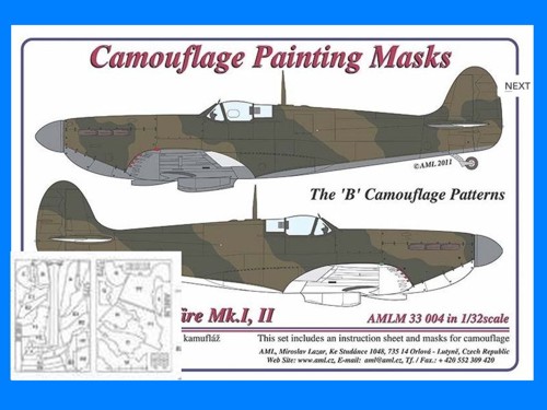 Supermarine Spitfire Mk.I, Mk.II The 'B' camouflage pattern paint masks (designed to be used with Hasegawa and Revell kits)