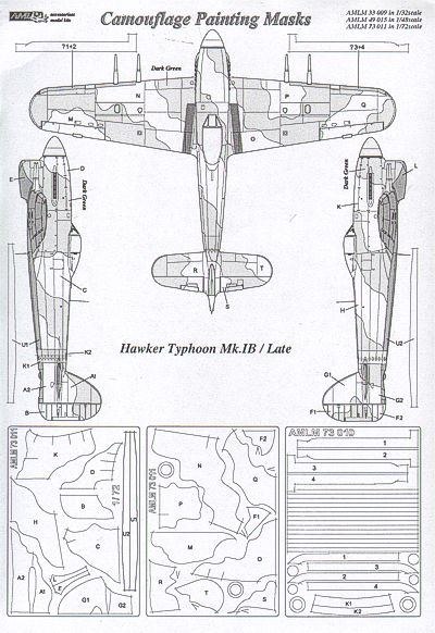 Hawker Typhoon Mk.Ib / Late version camouflage pattern paint masks (designed to be used with Revell kits)