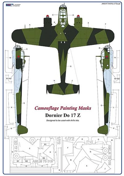 Dornier Do-17Z camouflage pattern paint masks (designed to be used with Airfix kits)