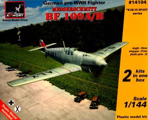 Messerschmitt Bf-109A/B, German pre-WWII fighter. Includes 2 kits in the box, with PE and vacuformed parts
