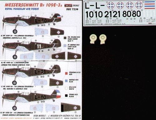 Kora - KORD7234 - 1:72 | Messerschmitt Bf-109E-3a Royal Yugoslav Air Force Choice of 3 Nos 10, 21, 80 More | Aircraft detailing sets (decal and resin) | Catalogue | £6.70 | ||
