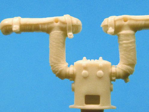 The parts are designed specifically for the above listed WNW kits in 1/32nd scale, but will work with Roden and others with a small amount of modification. The manifold has been detailed to include the asbestos cord insulation wrapped around the intake pipes. The sheet metal shielding has also been modelled and the mounting clamps are petitely reproduced. Castellated couplings, and additional details round out this simple upgrade. Once removed from its casting block, it is a drop fit for the original kit part. A quick and easy upgrade that will add a lot of detail to the already beautiful engine in these amazing kits.
