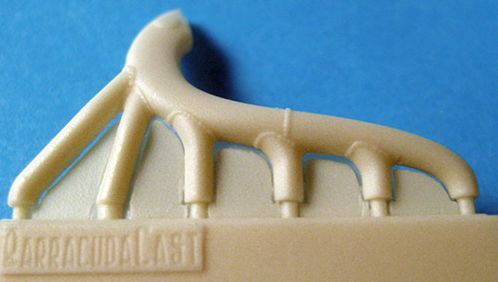 This super-detailed resin exhaust manifold directly replaces the kit exhaust manifold in the gorgeous1/32nd scale WNW Pfalz. D.XII. Once removed from its casting block, it directly replaces the kit part. It has been upgraded with the addition of weld beading at the junction of its component parts, and the opening has been deeply hollowed out for a more scale appearance. A very quick and easy upgrade to your late production Pfalz model. Attach, after painting, to the kit engine with Cyanoacrylate