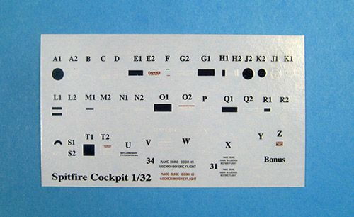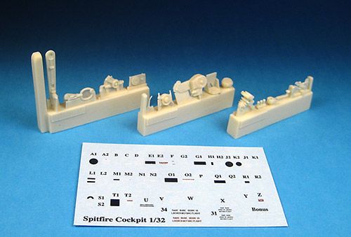Supermarine Spitfire Mk.I-Mk.V Cockpit Upgrade Set This set contains a number of small detail parts to detail and accurize the cockpit in the new Supermarine Spitfire Mk.IIa. Parts include a new 3 part stick, gunsight, throttle, retract quadrant, remote contactor, compass and mount, canopy latch and early style radio selector. Also includes a sheet of cockpit stencil decals. (designed to be used with Revell kits)