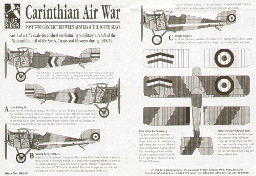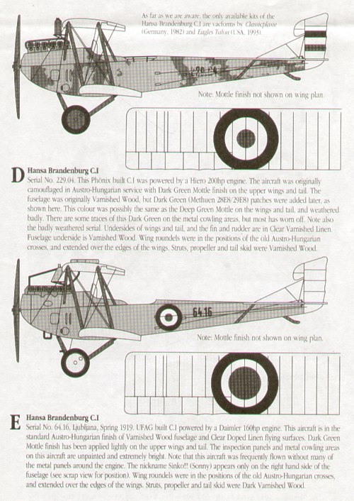 Carinthian Air War Slovenian Air Units Part 1. (5) Aviatik-Berg D.I No 38.53; Aviatik-Berg D.I (MAG) No 92.53; Aviatik-Berg D.I; Hansa-Brandenburg C.1 Nos 229.04 and 64.16