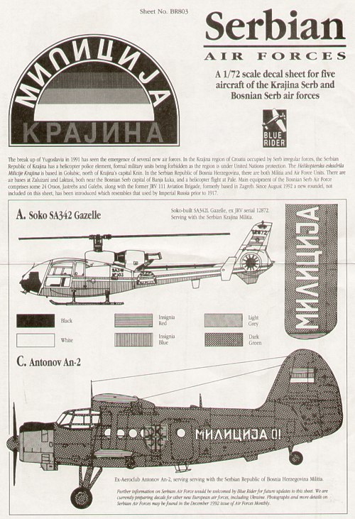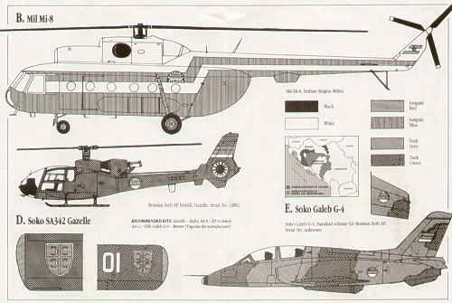 Serbian Air Forces 1991/92 (5) Westland SA.324 Gazelle; Antonov An-2 Colt; Mil Mi-8; Galeb G-4