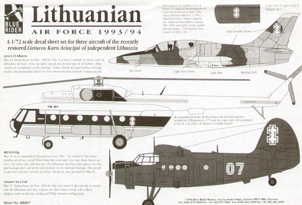 Lithuanian Air Force 1993/94 (3) Aero L-39 Albatross Blue 02; Mil Mi-8 Hip Blue 01 or 02; Antonov An-2 'Colt' Blue 07