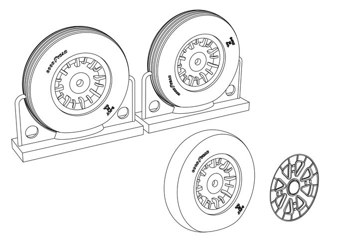 Vought F4U-1/F4U-4 Corsair/Grumman F6F-3/F6F-5 Hellcat Ribbed Tread Wheels set (designed to be used with Academy, Airfix, Arii, Eduard kits, Encore Models, Esci, Fujimi, Hasegawa, Hobby Boss, Hobbycraft, Monogram, Revell and Tamiya kits)