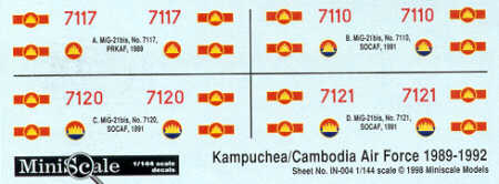 Mikoyan MiG-21 bis (4) Peoples Republic of Kampuchea Air Force. Red 7110, 7117; 7120; 7121. Now with full colour instruction sheets