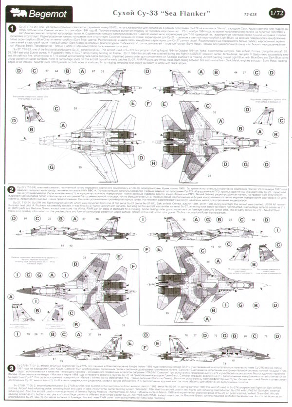 Sukhoi Su-33 Sea Flanker (20) Prototype, pre-production, flight test, 1st Aerial Sqn; 2nd Aerial Sqn;