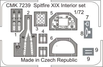 Supermarine Spitfire PR Mk.XIX - Interior set set (designed to be used with Airfix kits) Set contains highly detailed cockpit for the high altitude reconnaissance version of the WW II and post war British fighter aircraft. Set includes floor, seat and harness, side