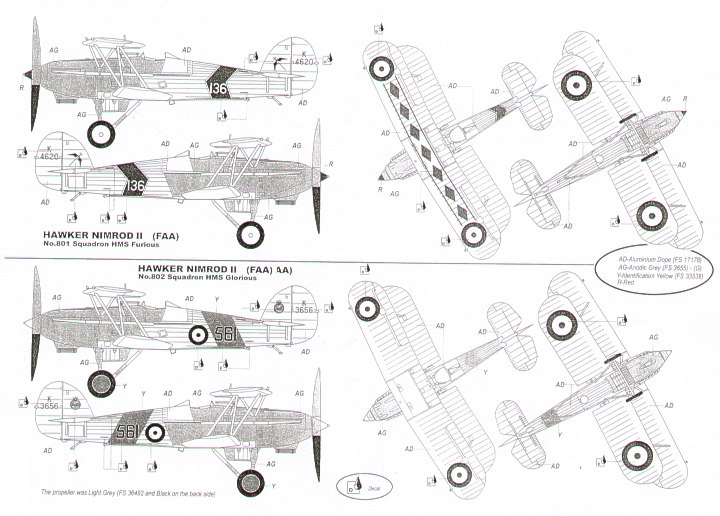Hawker Nimrod Mk.II Decals 801 Sqn FAA H.M.S. Furious. 802 Sqn H.M.S. Glorious. Hawker Nimrod L.B.V Decals Danish Air Force with numbering options for 9 aircraft. Includes optional wheels, spats and skis. Hawker Nimrod II - K4620 '136', 801 Squadron, H.M.S. Furious, Fleet Air Arm Hawker Nimrod II - K3656 '561', 802 Squadron, H.M.S. Glorious, Fleet Air Arm Hawker Nimrod L.B.V. - 170, 171 and 174 Danish Air Force, (Aluminium Doped scheme) pre-1938 Hawker Nimrod L.B.V. - 170 and 179 Danish Air Force, (camouflaged scheme) 1938 Manufacturer: Czech Master Resin Code Number: CMR72-150 Scale: 1:72 Item type: Aircraft kits (resin) Price: