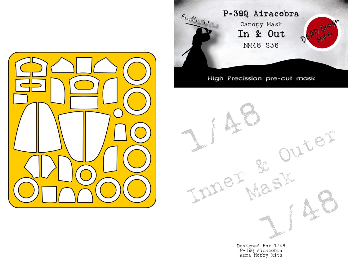 Bell P-39Q Airacobra canopy frame paint mask (inside and outside) (designed to be used with Arma Hobby kits)