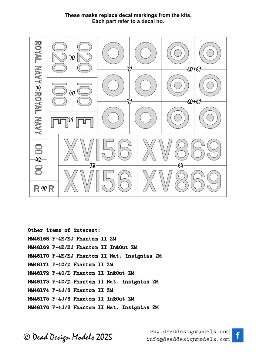 Blackburn Buccaneer National Insignia (designed to be used with Airfix kits) (This will not be kept in stock but can be added to our next order if you place it on Backorder. (on Backorder please not on a Wish list) Manufacturer: Dead Design Models Code Number: DDMNM48308 Scale: 1:48 Item type: Aircraft paint masks (self adhesive) Price: