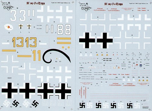 Messerschmitt Bf-109G-6 Tropical version (4) Yellow 1 12./JG 27 Greece 1943; White 3 7./JG 27 Franz Stadler Crete 1944; White 8 7./JG 27 Crete 1943; Yellow 13 II./51 Tuniasia 1943. All RLM 74/75/76 camouflage schemes with white fuselage bands and yellow undernose