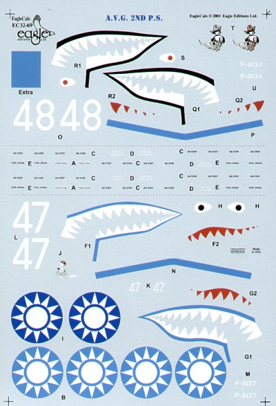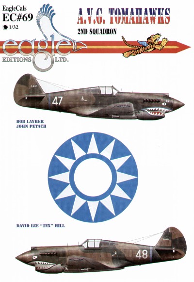 Curtiss P-40B AVG Tomahawk 2nd Sqn Blue fuselage bands (2) White 47 Bob Layher ; White 48 Tex Hill. Both with shark mouth