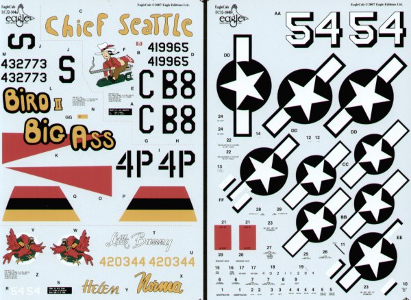 Republic P-47D Thunderbolt Pt 1 (3) 44-19965 B8-C 379th FS/362nd FG Lt Ray Murphy `Chief Seattle' 9th Air Force; 44-32773 4P-S 406th FG Major Howard Parks `Big Ass Bird'; 44-20344 No 54 57th FG Lt Willy Lyke `Little Bunny' OD/grey