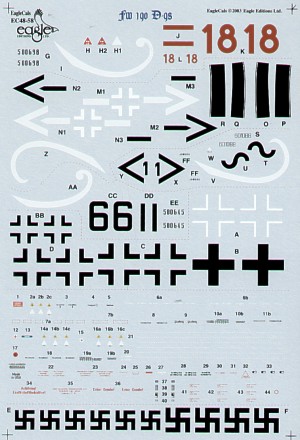 Focke-Wulf Fw-190D-9 (4) Brown 18 7/JG 26 Lt Seyd black/white fuselage band; Black <-+- JG 4; Black <1+~ Stab IV/JG 51 currently on display USAF Museum Dayton OH; Black 6 III/JG 2 yellow/white/yellow fuselage bands