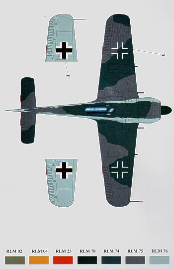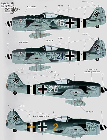 Focke-Wulf Fw-190A-8/RS II./JG 4 (Sturm). (4) White 16 Ofhr Franz Schaar 5/JG 4 Sept 44; Blue 21 Maj Gerhard Schroeder II/JG 4 Late 1944; White 20 Uffz. Erich Keller 5/JG 4 Dec 44; Yellow 2 Fw Erich Guldenpfennig 7/JG 41945