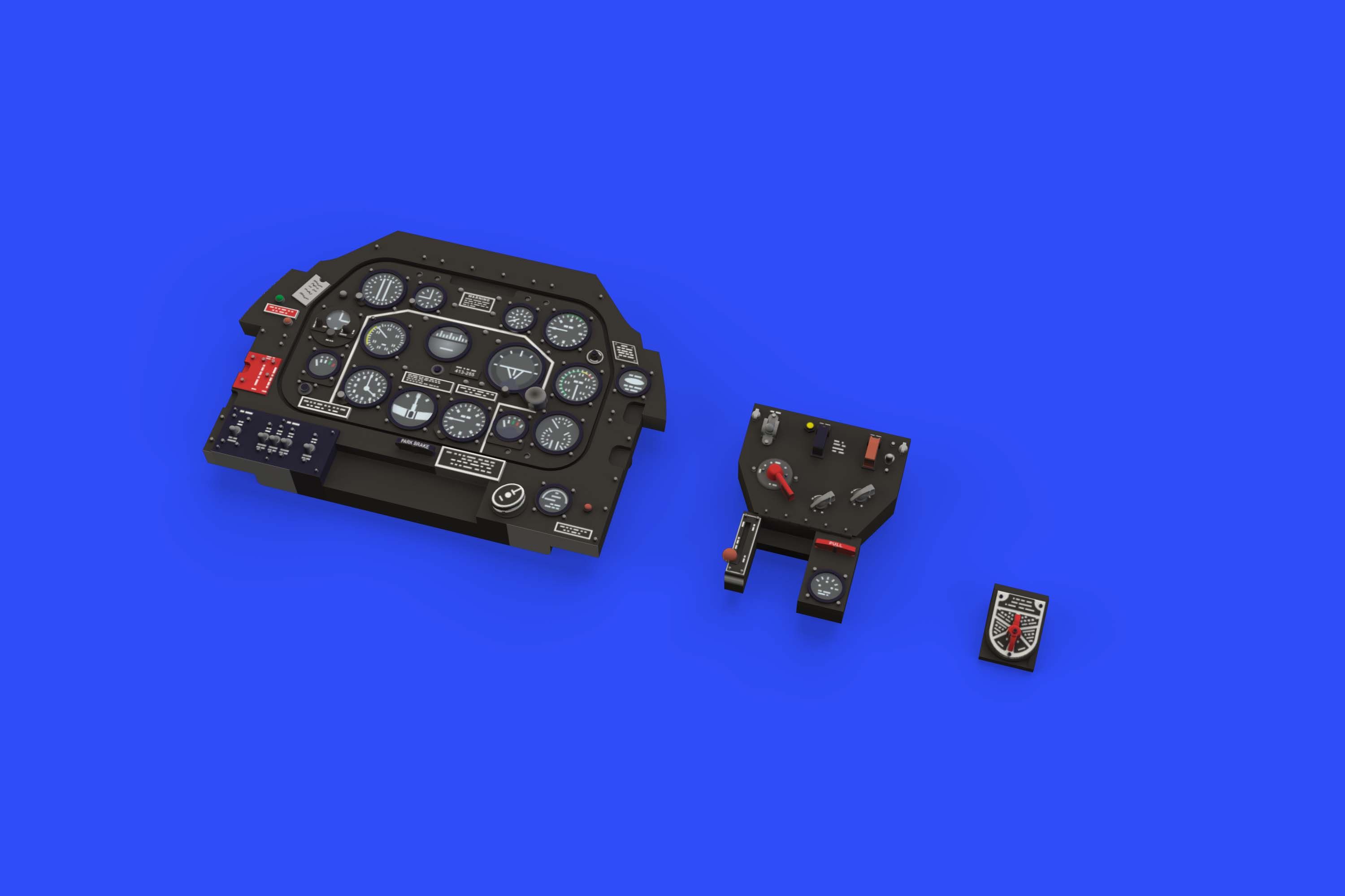 North-American P-51D-5 Mustang LooK set of Brassin pre-painted instrument panel and steel seat belt (designed to be used with Tamiya kits)