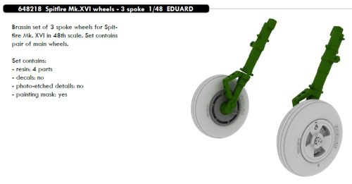Supermarine Spitfire Mk.XVI wheels with weighted tyre effect - 3 spoke (designed to be used with Eduard kits)