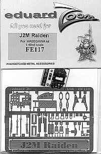 Mitsubishi J2M Raiden (designed to be used with Hasegawa kits) Includes about 20 of the more important and prominent parts for detailing the aircraft. Most sets are also available as part of a double set for the modeller who wants even more detail. Please see the picture for the double set part number.