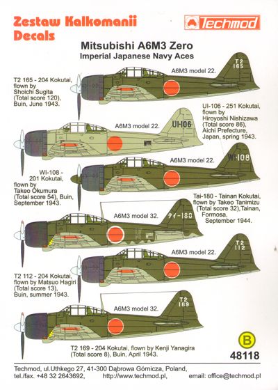 Techmod - TM48118 - 1:48 | Mitsubishi A6M3 Zero More | Aircraft decals (military) | Catalogue | £5.40 |