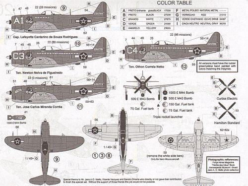 Re-printed! Jambock Squadron - Tarquinia 1944. Brazilian Republic P-47D Thunderbolt. Markings for any aircraft flown by Brazil in Italy 1944 as part of the 350th FG. OD/grey camouflage schemes and natural metal finishes.