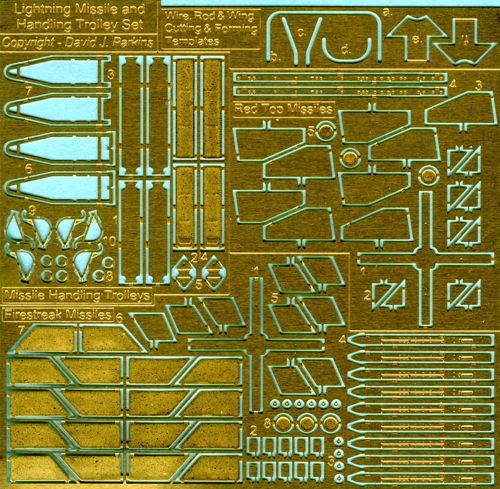 BAC/EE Lightning Missile and Handling Trolley Set (designed to be used with Airfix, Sword and Trumpeter kits) This set is invaluable for your 72nd Lightning displays and can be used with any of the kits around. The set contains 2 each of Firestreak and Red Top missiles plus two missile handling trolleys [F.1 F.2A F.3 F-6 F.2A/F.6 T.Mk.4 T.Mk.5 F.1A/F.2]