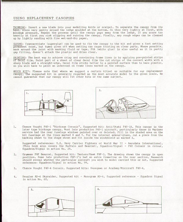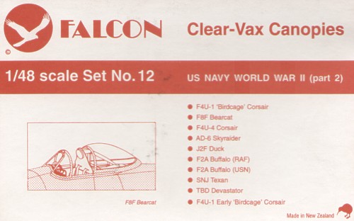 USN WWII Part 2. Vought F4U-1 'Birdcage' Corsair (designed to be used with Arii and Otaki kits) Grumman F8F Bearcat (designed to be used with Italeri and Testors kits) Vought F4U-4 Corsair (designed to be used with Academy, Hasegawa and Minicraft kits) Douglas AD-6 Skyraider (designed to be used with Monogram kits) Grumman J2F Duck GL Brewster F2A Buffalo (designed to be used with Tamiya kits) North-American SNJ Texan (designed to be used with Monogram kits) Douglas TBD-1 'Devastator' (designed to be used with Monogram kits) Vought F4U-1 early 'Birdcage' (designed to be used with Arii and Otaki kits)