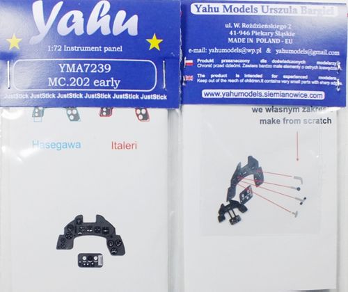Macchi C.202 Early Version Photoetched instrument panels. Coloured. Ready to fit in a model (JustStick) (designed to be used with Hasegawa, Hobby 2000 and Italeri kits)