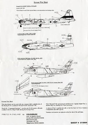 Check Six - CS72004 - 1:72 | Korean War Boeing B-29A, Lockheed F-80C, North-American F-86F Sabre x 2 FU-959 FU-944) More | Aircraft decals (military) | Catalogue | £4.99 | ||