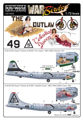 Kits-World - KW172072 - 1:72 | Boeing B-29-25-MO Super Fortress 42-65306 'The Outlaw'é 19BG 28BS Okinawa 1951 - B-29-85-BW 44-87660 'Celestial Queen' 40BG 44BS 58BW 1945 More | Aircraft decals (military) | Catalogue | £10.20 | ||