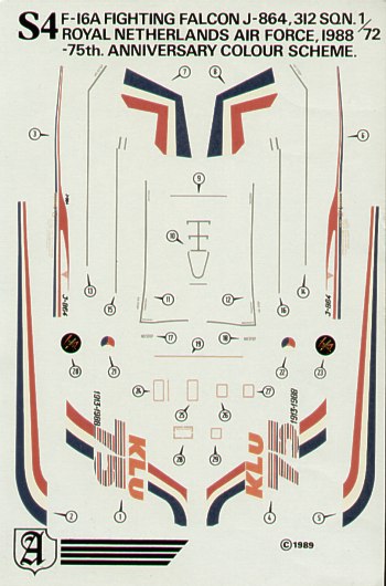 Almark - AKS04 - 1:72 | General-Dynamics F-16A Fighting Falcon (1) Royal Netherlands Air Force J-864 312 Sqn 75th Anniversary Scheme WAS é£2.99.NOW BEING CLEARED!! More | Aircraft decals (military) | Special Offers | £0.99 | ||