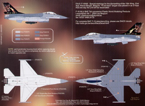 Zotz - ZTZ72002 - 1:72 | General-Dynamics F-16A Fighting Falcon (1) 23 Sqn Belgian Air Force deactivation. 'I'll Be Back' More | Aircraft decals (military) | Catalogue | £9.99 | ||