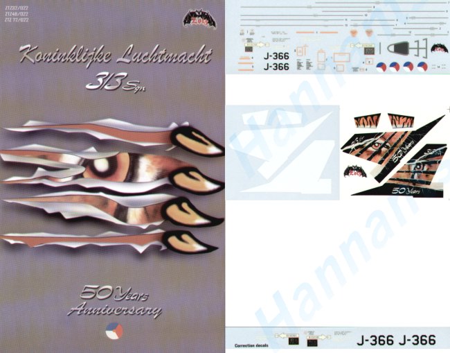 Zotz - ZTZ72022 - 1:72 | General-Dynamics F-16A Fighting Falcon (1) Royal Netherlands Air Force J-366 313rd Sqn 50th Anniversary 2004 Tiger Meet More | Aircraft decals (military) | Catalogue | £9.99 | ||