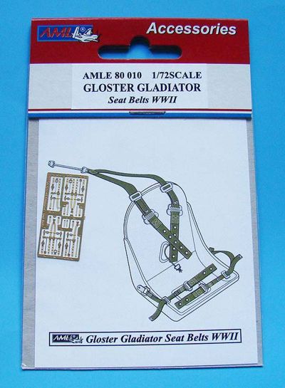 AML - AMLE8010 - 1:72 | Gloster Gladiator Mk.I/Mk.II seatbelts RAF WWII (designed to be used with Airfix, Frog, Hobby Boss, Matchbox, and Revell kits) More | Aircraft detailing sets (etched) | Catalogue | £1.99 | ||