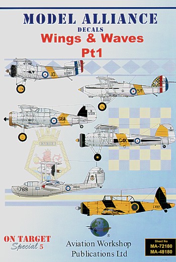 Model Alliance - ML72180 - 1:72 | Wings and Waves Pt 1 (7) Supermarine Walrus 1 K8343.769 718 Flt H.M.S. Exeter 1937; L2236/G9U 712 Sqn H.M.S. Cumberland 1939; Fairey Swordfish Mk.I K5960 G-4K/802 823 Sqn H.M.S. Glorious 1939; Gloster Sea Gladiator N5519/G6A 802 Sqn H.M.S. Glorious 1939; Hawker Hind S1579/571 408 Flt H.M.S. Glorious; Blackburn Skua L3007 757 Sqn, Target Tug 1939; Fairey Flycatcher S1282/10 408 Flt H.M.S. Glorious. Double sheet (BISMay22) More | Aircraft decals (military) | Limited Availability | £11.25 | ||