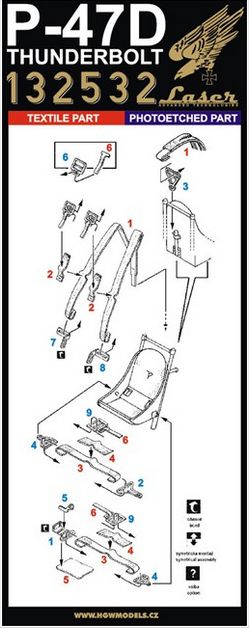 Republic P-47D Thunderbolt seatbelts (laser) (designed to be used with Hasegawa, Revell and Trumpeter kits)