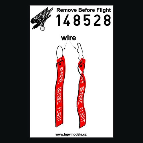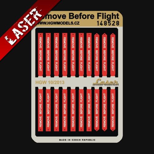 Remove Before Flight/RBF (laser) Manufacturer: HGW Code Number: HGW148528 Scale: 1:48 Item type: Aircraft detailing sets (fabric) Price: