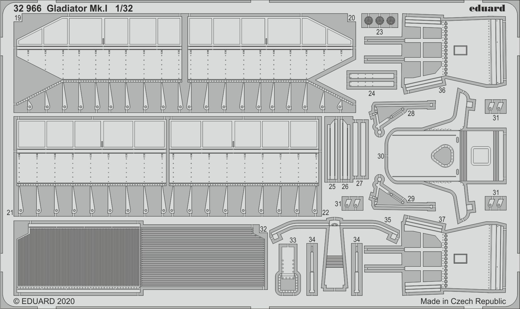 Eduard - ED32966 - 1:32 | Gloster Gladiator Mk.I (designed to be used with ICM kits) (Eduard sold out January 2023) More | Aircraft detailing sets (etched) | Limited Availability | £22.20 | ||