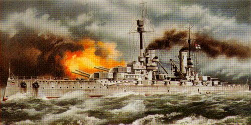 'Kronprinz' Battleship served with Kaiser German Navy of WWI period. She belonged to the "KĦnig" class ships. "Kronprinz" was commissioned 8.11.1914 and entered the 3rd Squadron of Open See Fleet (Hochseeflotte).