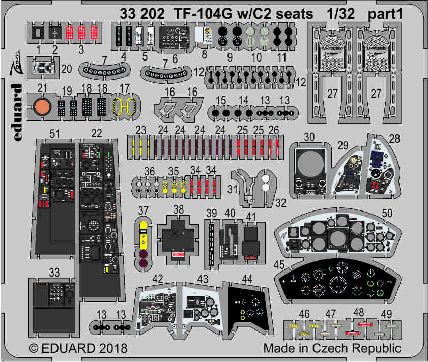 Eduard - ED32932 - 1:32 | Lockheed TF-104G Starfighter interior w/MB seats (designed to be used with Italeri kits)(Eduard sold out August 2023 part 1) More | Aircraft detailing sets (etched) | Limited Availability | £29.70 | ||