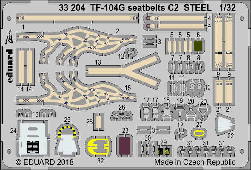 Eduard - ED33204 - 1:32 | Lockheed TF-104G Starfighter seatbelts C2 STEEL (designed to be used with Italeri kits)(Eduard sold out December 2021) More | Aircraft detailing sets (etched) | Limited Availability | £19.99 | ||