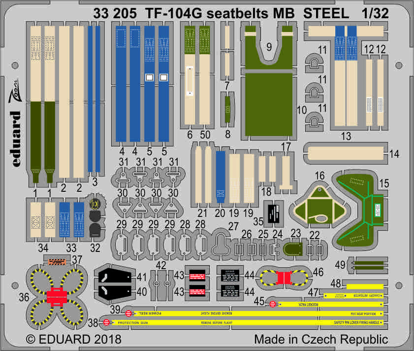 Eduard - ED33205 - 1:32 | Lockheed TF-104G Starfighter seatbelts MB STEEL (designed to be used with Italeri kits) More | Aircraft detailing sets (etched) | Catalogue | £20.40 | ||