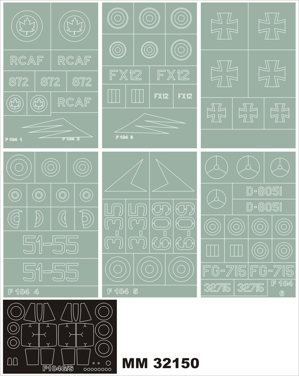 Montex - MXMM32150 - 1:32 | Lockheed F-104G/S STARFIGHTER canopy frame paint masks (inside and outside) + insignia and markings masks (designed to be used with Italeri kits) More | Aircraft paint masks (self adhesive) | Catalogue | £12.20 | ||