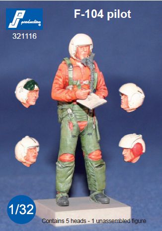 PJ Productions - PJ321116 - 1:32 | Lockheed F-104 pilot standing 1 multipose figure. Choice between 5 heads with the different types of helmets worn by the F-104 pilots (USA; Europe; Canada) [Lockheed F-104C F-104G Starfighter] (designed to be used with Hasegawa and Italeri kits) More | Figures (resin) | Limited Availability | £14.99 | ||