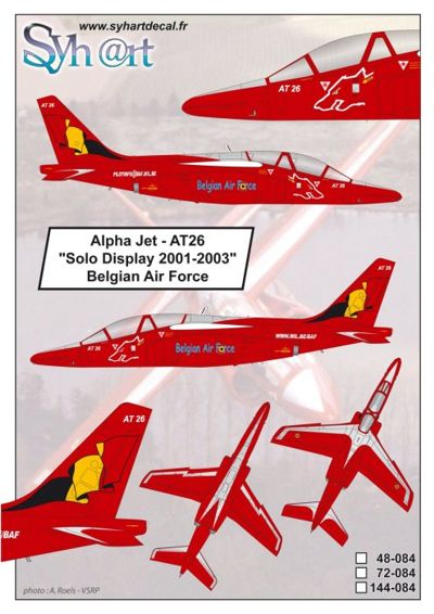 Syhart Decal - SY48084 - 1:48 | Dassault-Dornier Alpha Jet AT26 "Solo Display 2001-2003" Belgian AF More | Aircraft decals (military) | Catalogue | £11.99 | ||